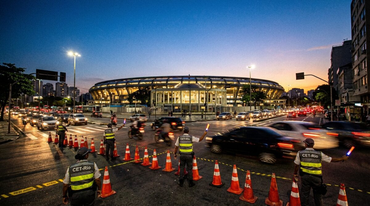 A Companhia de Engenharia de Tráfego do Rio de Janeiro (CET-Rio) executará um planejamento viário específico no entorno do Estádio do Maracanã neste domingo, dia 22 de fevereiro. A mobilização visa organizar o fluxo de veículos para a partida entre Flamengo e Madureira, válida pelo Campeonato Carioca, com início agendado para às 20h30. As alterações no trânsito começam a vigorar a partir das 18h, com previsão de término na madrugada de segunda-feira.