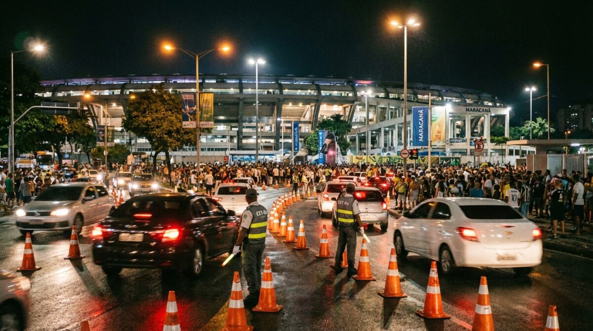 Motoristas devem ficar atentos aos horários de interdição e rotas alternativas planejadas pela CET-Rio para garantir a fluidez na região do estádio durante a partida